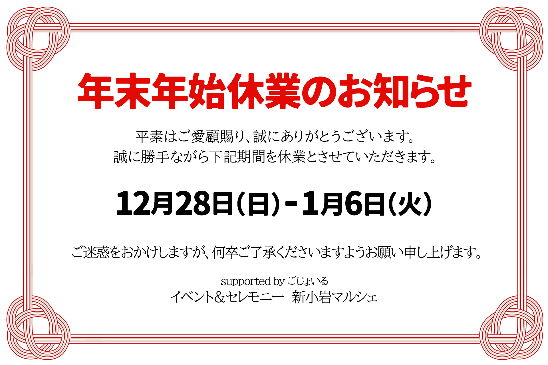 2024年12月28日(日)~ 2025年1月6日(火) 休業