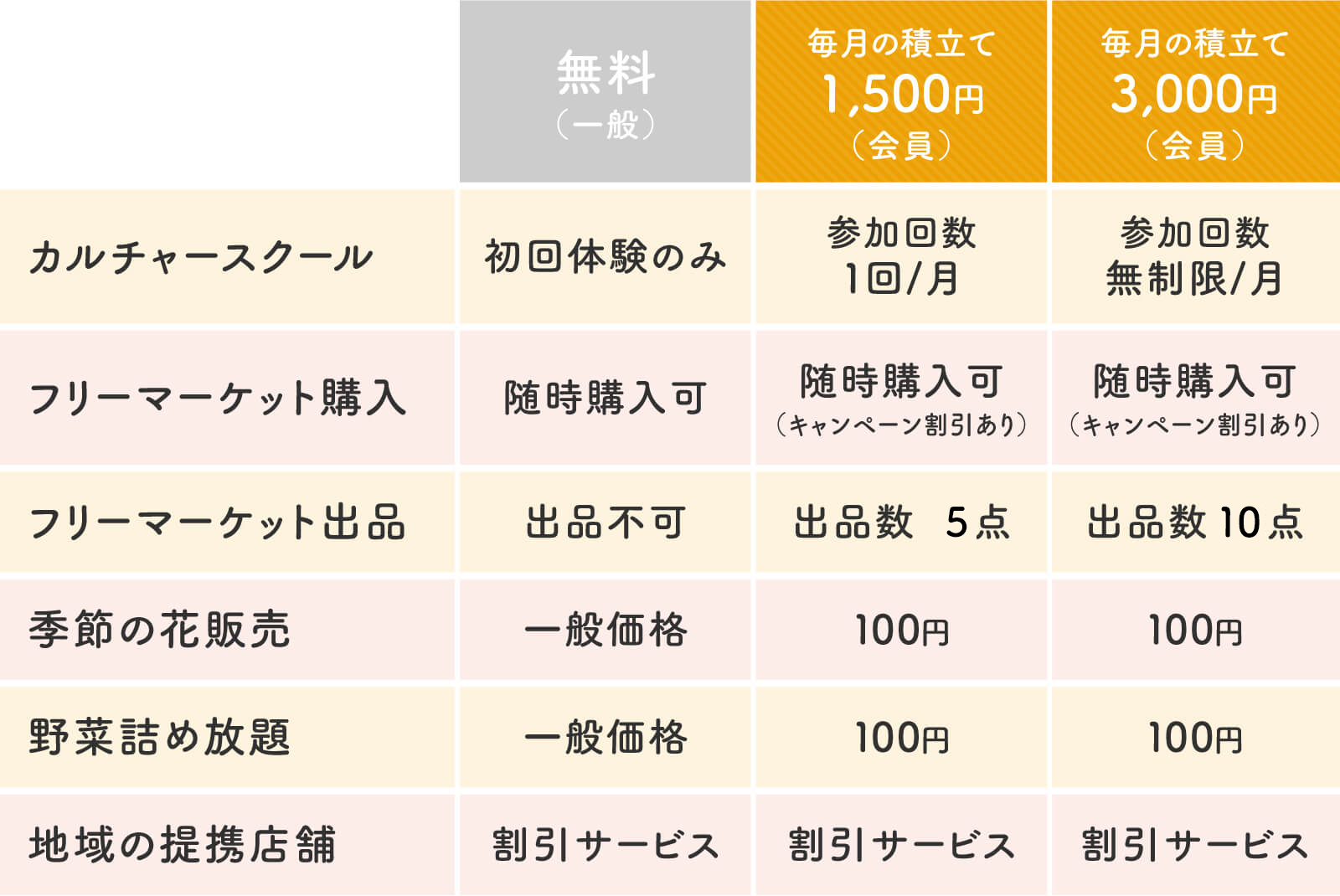 お積立ての金額に応じて、サービスの利用内容が異なります。