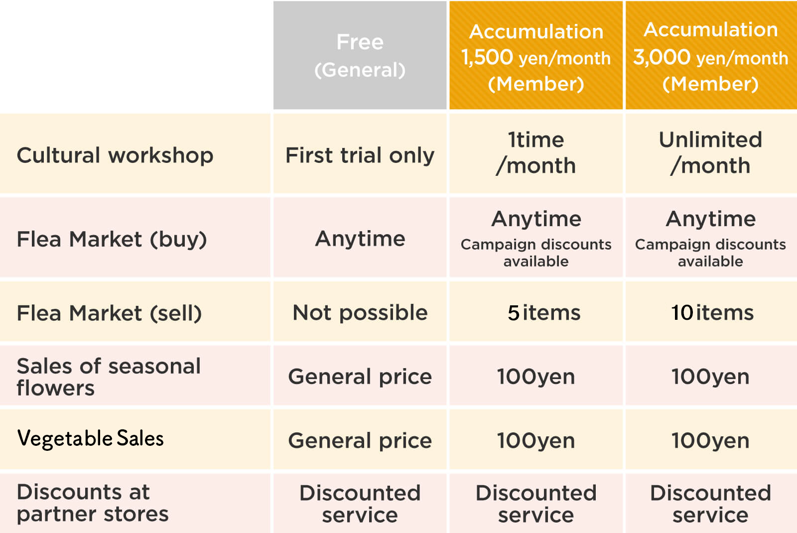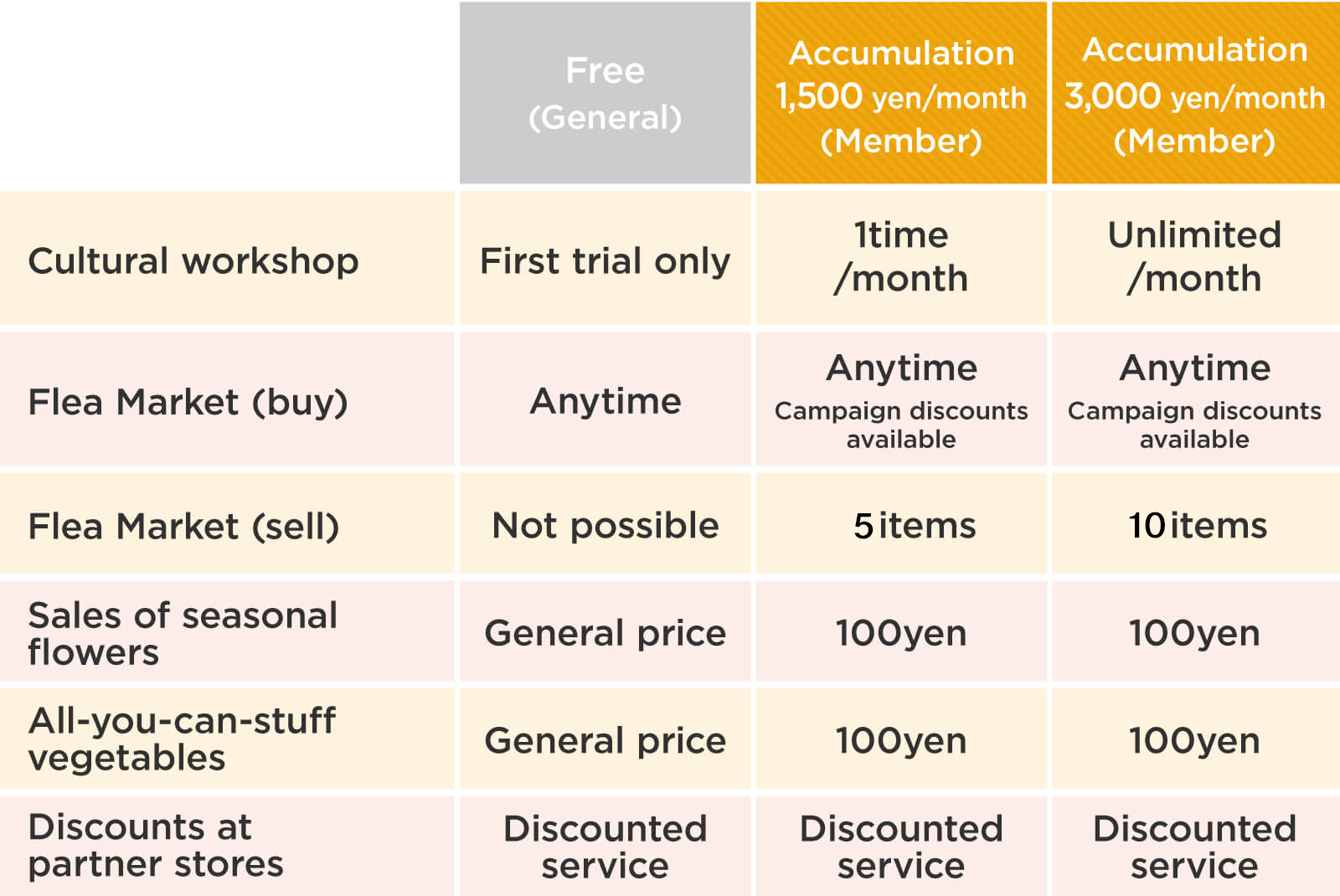 フリーマーケットやイベントなどサービスへの参加には、ごじょいる会員マルシェメンバー(=互助会) への登録が必要です。